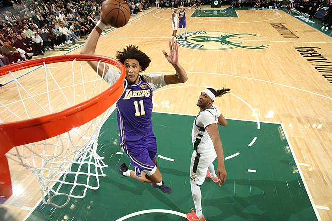 本场比赛中,湖人的替补中锋贾克森-海斯(Jaxson Hayes)也是保持了较高的水准。海斯全场出场16分41秒,投篮4中3,罚球4中4,得到了10分6篮板1助攻2抢断的数据,还有2次失误和1次犯规,正负值为+10。海斯在进攻端也是发挥出了自己的特点,他展现出了不错的篮下终结能力和得分能力,他也是能够在进攻端起到不小的作用的,他的强力扣篮也是能够提升球队的士气。海斯在防守端同样有着不俗的表现,他也是能够起到很好的效果并且在内线防守方面发挥出自己的作用。海斯毕竟只是一名出场时间不多且出手次数有限的替补中锋,能够打出这样的表现已经算是远远超出大家预期了,他也为球队的这场胜利做出了不小的贡献。